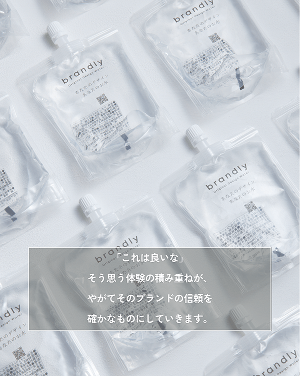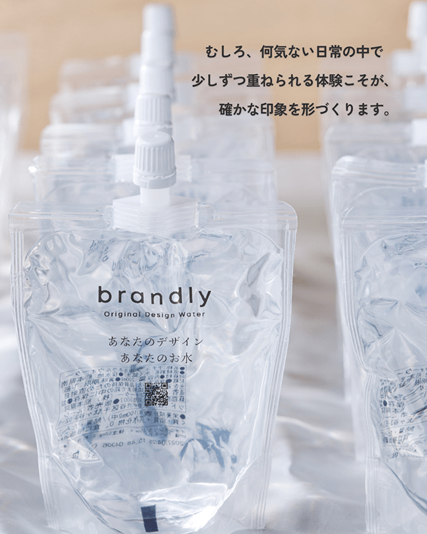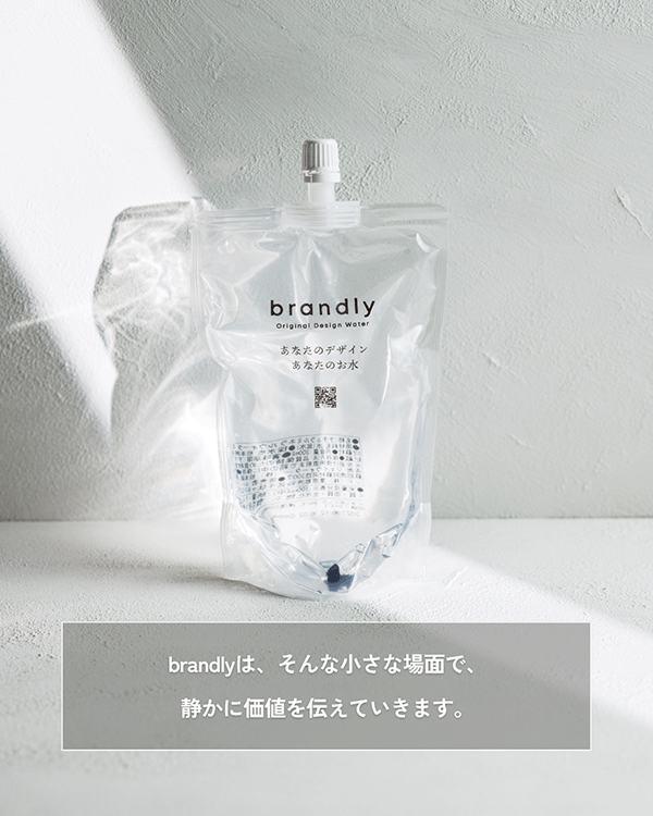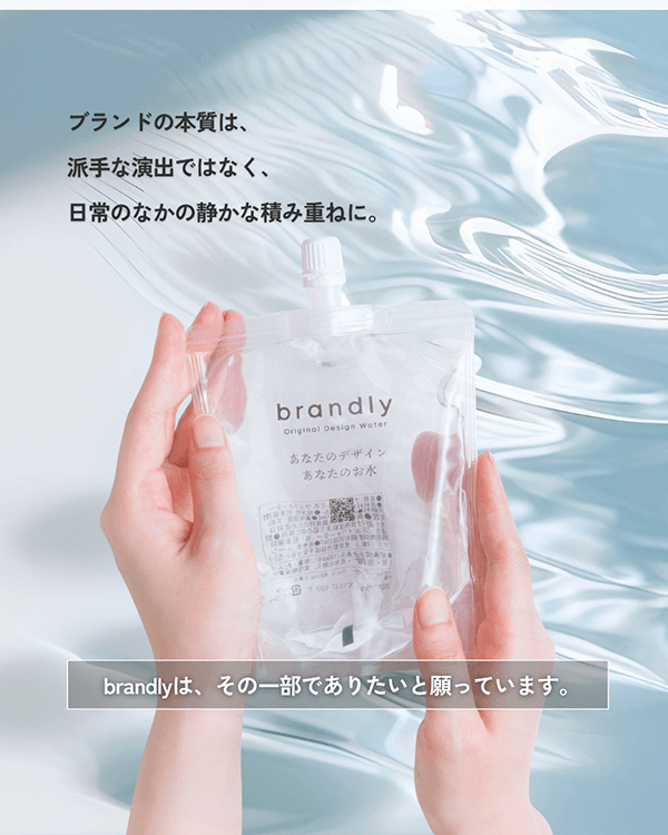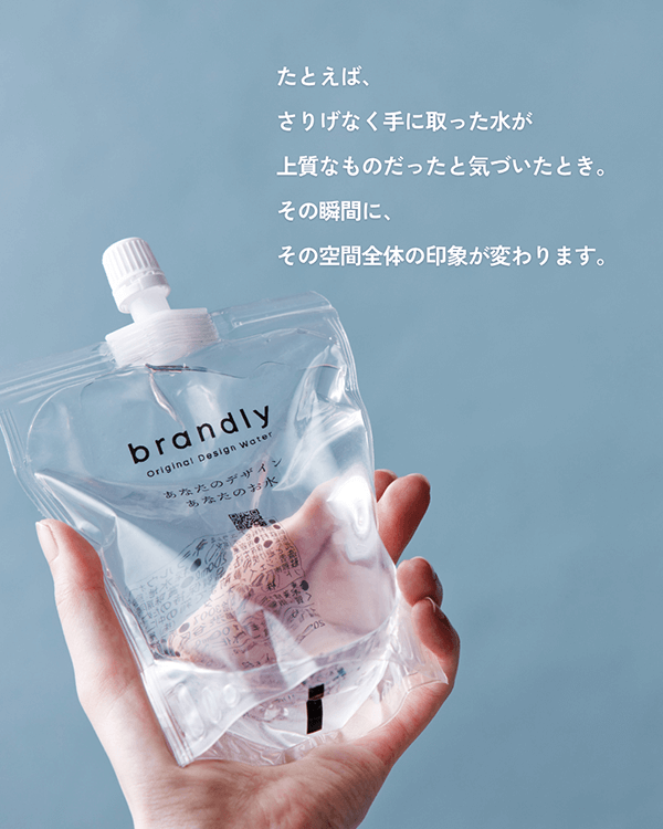 brandlyとは、あなたのロゴやメッセージなどつくりたいデザインを印字してオリジナルのお水がつくれるサービスです。